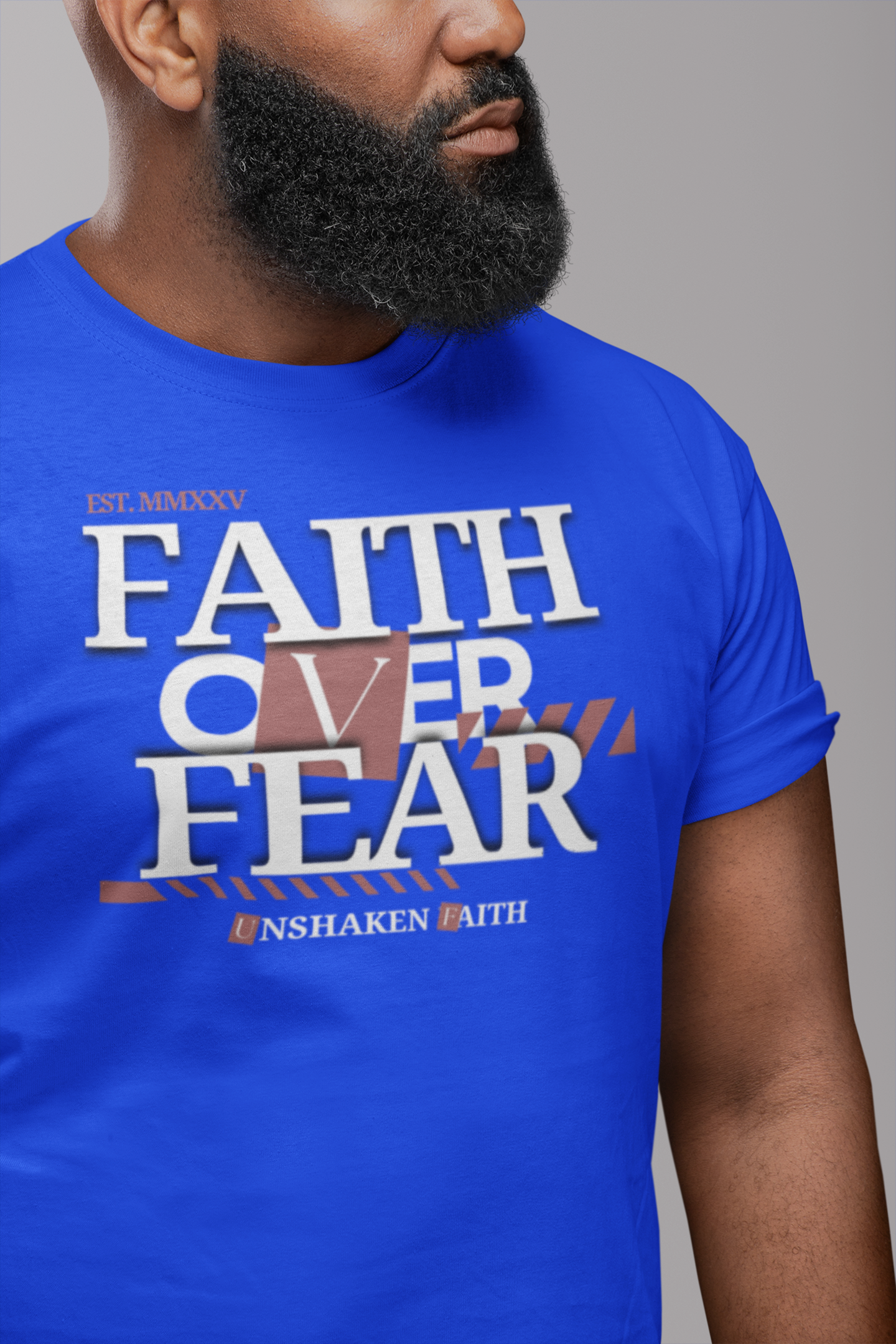 Step out in boldness and confidence with our Faith Over Fear Tee – a powerful statement of trust in God's promises. This unisex Christian t-shirt is made from premium, soft ring-spun cotton, offering all-day comfort and a perfect fit. Whether you're heading to church, running errands, or enjoying time with friends, this tee serves as both a stylish outfit and a wearable testimony. The bold design reminds you and others that faith always wins over fear. Ideal for personal wear or as a meaningful gift, it's a must-have piece for anyone passionate about living a faith-filled life.